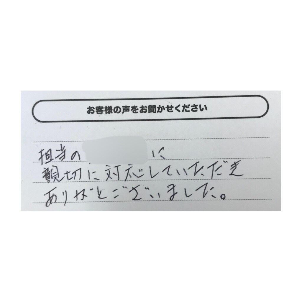 ・お客様の声 担当に親切に対応していただきありがとうございました。 ・レビューありがとうございます。 「親切だった」とのお言葉を頂戴し、スタッフ一同嬉しく思っております。お客様一人ひとりのご状況に合わせた最適なご提案ができるよう、青森店スタッフ一同努めてまいります。