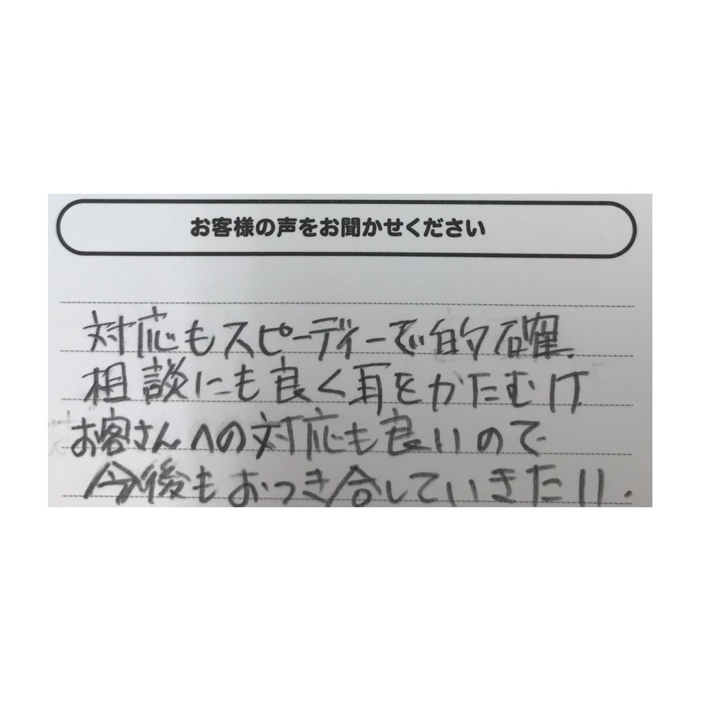 2026.01.26 八戸店 軽自動車 D様 ・お客様の声 対応もスピーディーで的確。相談にも良く耳をかたむけお客さんへの対応も良いので今後もおつき合いしていきたい ・レビューありがとうございます 柔軟なご相談対応にご満足いただきありがとうございます。お客様一人ひとりのご状況に合わせた最適なご提案ができるよう、八戸店スタッフ一同努めてまいります。