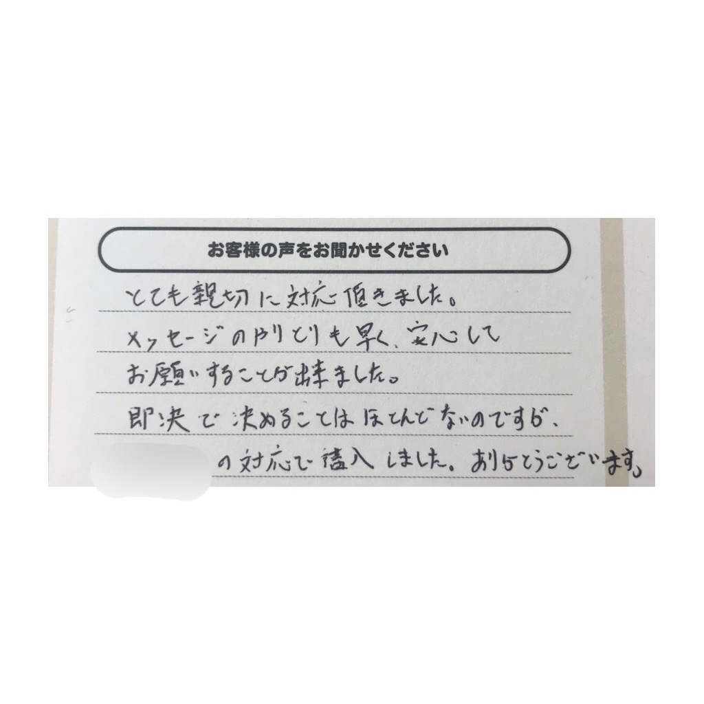 即決で決めることはほとんどないのですが、担当の方の対応で購入しました。ありがとうございます。