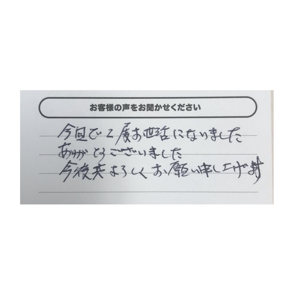 2025.10.17 郡山店 普通車 M様 ・お客様の声 今回で2度 お世話になりました。ありがとうございました。 今後ともよろしくお願いいたします。 ・レビューありがとうございます。 再び郡山店をご利用いただき、心より感謝申し上げます。郡山市でお客様に選ばれ続けるお店であるよう、今後も変わらぬサービスと信頼をお届けしてまいります。