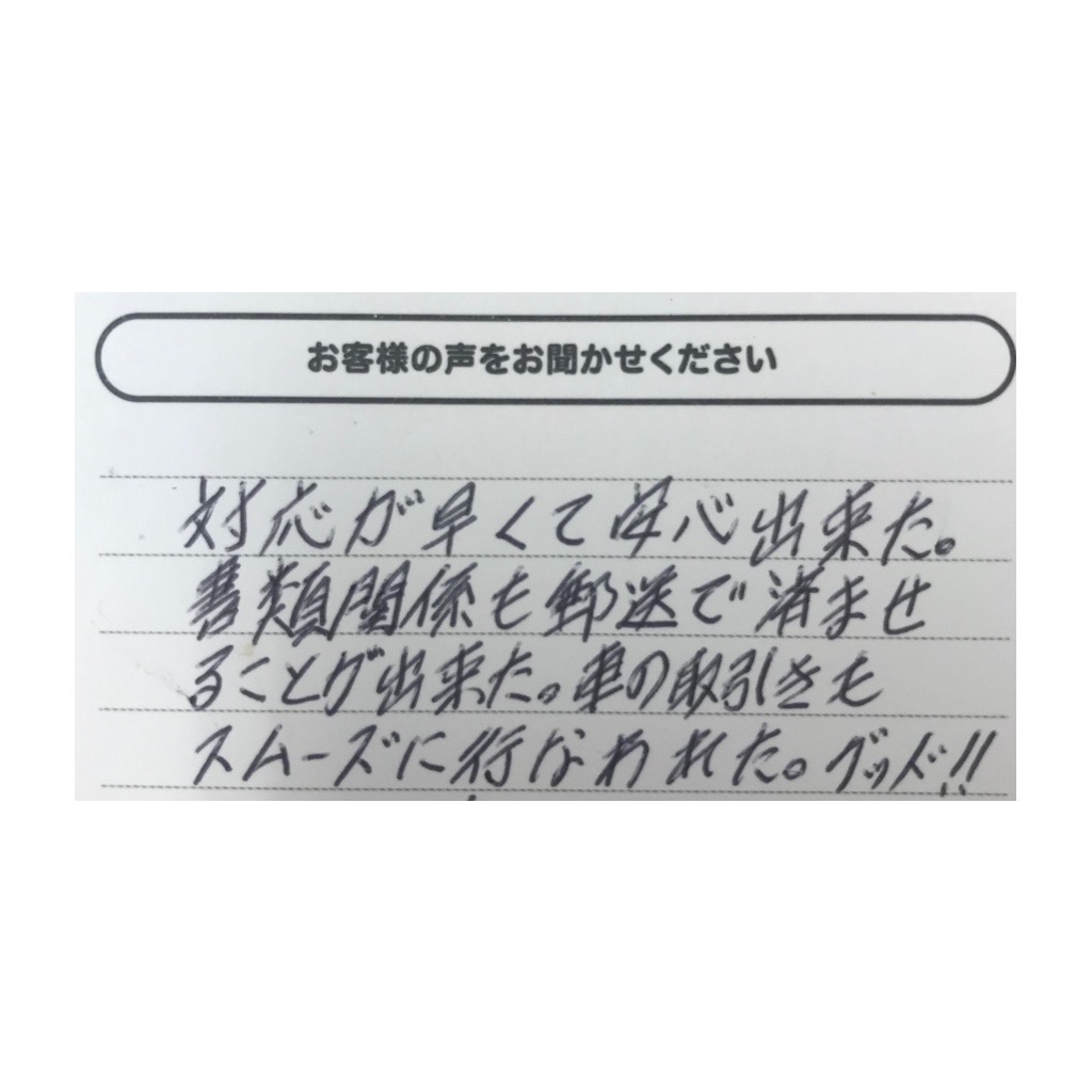 2026.02.12 郡山店 SUV O様 ・お客様の声 対応が早くて安心出来た。書類関係も郵送で済ませる事が出来た。車の取引もスムーズに行われた。グッド‼ ・レビューありがとうございます 車の取引もスムーズに行われたとのこと、私たちも嬉しく思っております。今後もスピード感と丁寧さを両立してご対応してまいります。