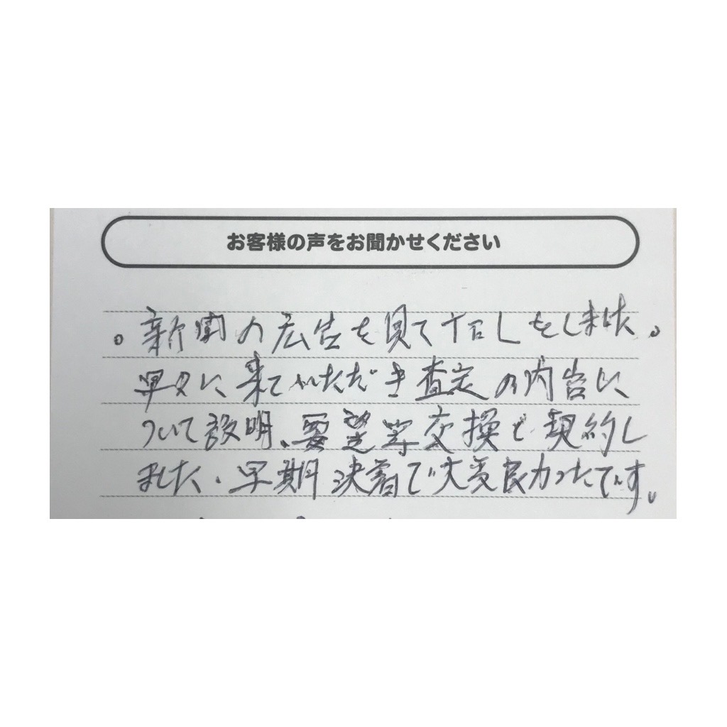 2025.10.17 札幌店 軽自動車 S様 ・お客様の声 新聞の広告を見てTELをしました。 早々に来ていただき査定の内容について説明、要望など交換で契約しました。早期決着で大変良かったです。 ・レビューありがとうございます。 札幌市内に数ある車買取店の中から当店をお選びいただき、心より感謝申し上げます。査定相談にもスピーディーに対応でき、お役に立てたようで何よりです。今後も中古車査定からお引き取りまでスムーズに行えるサービスを提供してまいります。
