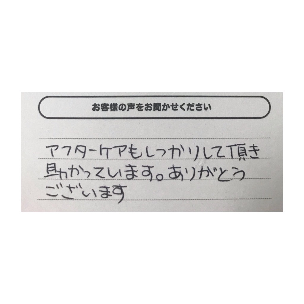 2026.01.29 青森店 普通車 T様 ・お客様の声 アフターケアもしっかりして頂き助かってます。ありがとうございます。 ・レビューありがとうございます アフターケアについてご信頼いただきありがとうございます。青森店では、青森市のお客様に長く安心してご利用いただけるよう、購入後のサポートも大切にしております。今後ともどうぞよろしくお願いいたします。