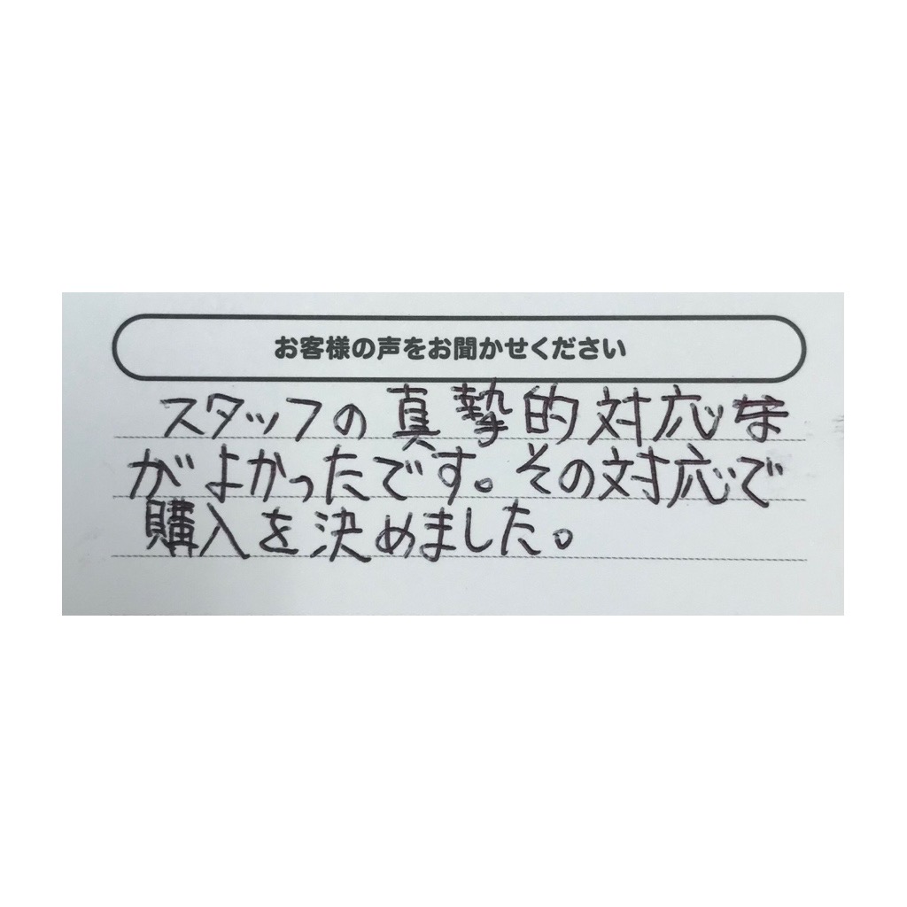 2025.11.11 八戸店 軽自動車 Y様 ・お客様の声 スタッフの真摯的対応が良かったです。その対応で購入を決めました。 ・レビューありがとうございます。 ご相談対応にご満足いただきありがとうございます。お客様一人ひとりのご状況に合わせた最適なご提案ができるよう、スタッフ一同努めてまいります。